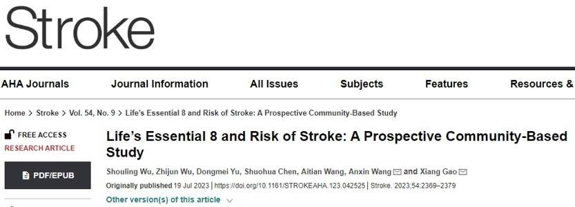 2022年,美国心脏协会将睡眠健康纳入了生命八要素,包括饮食、身体活动、吸烟状况、睡眠4个行为因素以及BMI、胆固醇、血糖、血压4个代谢因素。目前,LE8心血管健康评分与未来中风时间的相关数据有限。
