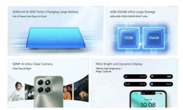 续航方面,荣耀X6b搭载了一块5200mAh的大电池,支持35W有线快充技术。同时,它还运行基于Android 8.0的MagicOS系统。