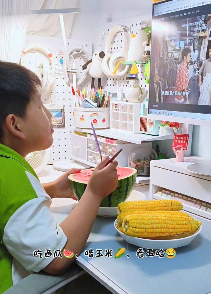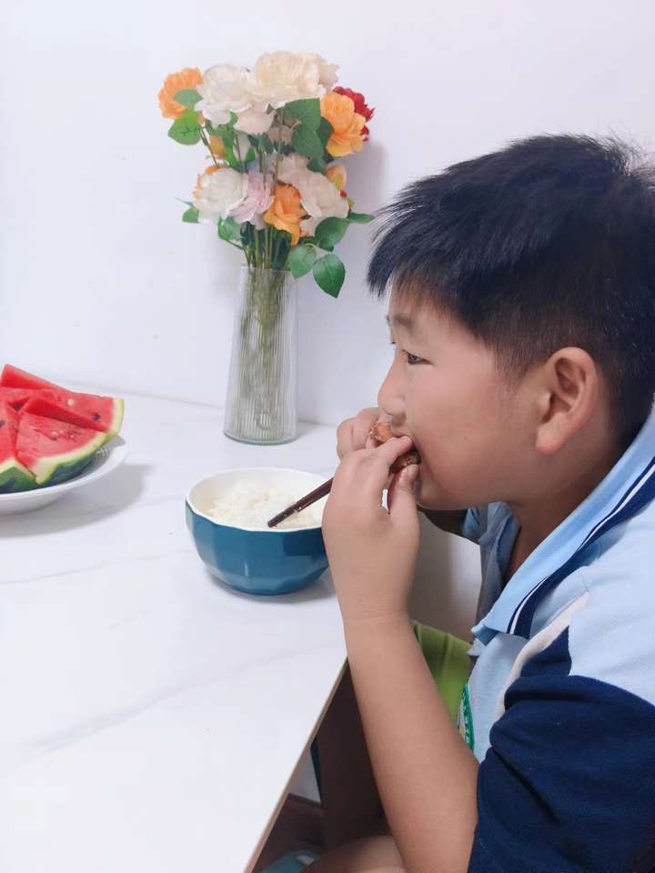吃西瓜的时候,不用提醒他,他会给我留一半,下勺子的时候会从一侧挖着吃。