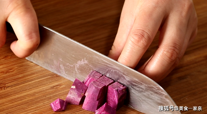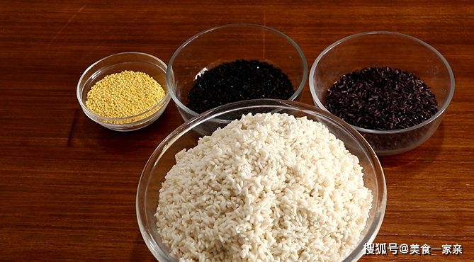 咸蛋黄改刀切小块,紫薯切小块,泡好的香菇切片,将几种米都用清水洗一下,不用浸泡,这样包好的粽子吃起来口感比较好,有嚼劲。