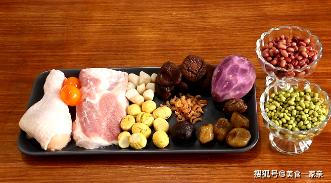 粽叶,糯米,紫米,黑米,小米,五花肉,鸡腿,紫薯,咸蛋黄,干贝,干香菇,海米,板栗,豆沙,红豆,绿豆。